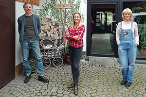 (Drehbuch und Regie von Sabine), Animation Michel Hufenbach Foto rechts: Heiko Büter vom Verein Little Opera, Stefanie Hertel und Little-Opera-Gründerin Sabine Maria Schoeneich (v. l.) in einer AufnahmepauseVogtlandsaga